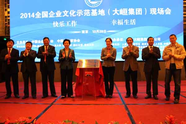 ![]() 近日,中国企业联合会在南京召开2014全国企业文化示范基地(大集团)现场会,授予大集团“全国企业文化示范基地”称号。中国企业联合会、中国企业家协会驻会副会长尹援平、江苏省总工会主席、党组书记邢春宁、中国企业联合会常务副理事长于吉、北京大学原副校长张国有、江苏省委组织部组织二处处长季金松、江苏省冶金行业协会秘书长陈建华、大集团董事长、党委书记卢显忠等出席会议并为全国企业文化示范基地揭牌。
