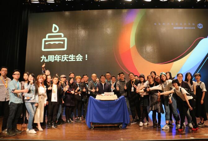 大会在分享生日蛋糕和嘉宾合影环节落下帷幕,感谢本次大会的分享嘉宾和参会观众,还有可爱的志愿者们,感恩有你们,UI中国将持续为大家提供更多优质服务,始于而不止于设计,未来让我我们共同携手,一起筑梦共赢!期待明年,十周年相聚!