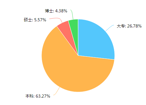 参与本次调研的大学生男女比例为41:59,其中本科学历人数最多,占到63.2%,博士、硕士和大专学历分别占比4.4%、5.6%和26.8%;在所学专业方向方面,理工学科人数占到51.3%,人文、艺术、体育和军事学科人数分别占比30.3%、10.2%、4.5%和3.7%;参与调研的大学生来自全国各省和海外,参与人数超过千人的省份有广西、重庆、山东、广东、河南、贵州、四川、江苏等。