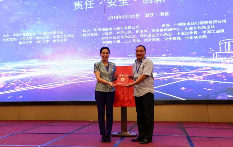 近日,中国企业联合会在浙江海盐召开2019全国企业文化现场会,授予中核核电运行管理有限公司(以下简称“秦山核电”)“全国企业文化最佳实践企业”。中国企业联合会、中国企业家协会驻会副会长尹援平、常务副理事长于吉,浙江省国资委党委副书记、副主任陈月亮,中国核工业集团有限公司党群工作部副主任朱向军,浙江省企业联合会、浙江省企业家协会常务副会长陈卫东,北京财贸职业学院原校长、二级教授、博士生导师王成荣,中国核能电力股份有限公司董事会秘书罗小未,中国电力企业联合会会员与企业文化部主任郭玮,浙江省委宣传部思想政治工作研究会常务副秘书长、浙江省企业文化建设协会秘书长马玲,秦山核电党委书记、董事长吴岗等出席现场会并为秦山核电全国企业文化最佳实践企业揭牌。现场会由于吉主持。