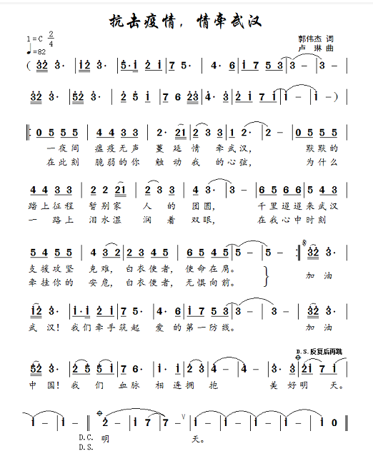 2、抗“疫”歌曲《抗击疫情,情牵武汉》1月27日正月初三作曲定稿