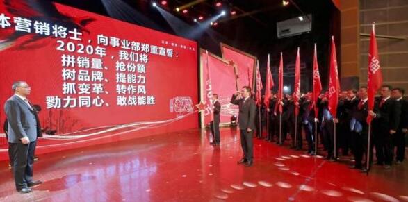在本次誓师大会上,以发动机事业部党委书记、总经理钱恒荣为代表的领导们肩抗“赢战2020”大旗,向重点项目工作组授旗并与前线战士们共同宣誓。