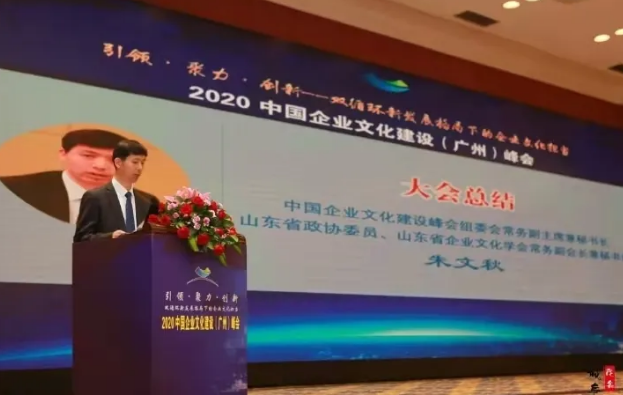 峰会最后,峰会组委会常务副主席兼秘书长、山东省政协委员、山东省企业文化学会常务副会长兼秘书长朱文秋作了大会总结。