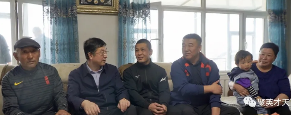 ![]() 族委书记孙振江(左二)、内蒙古自治区重竞技中心主任文江(左四)与赛音吉日嘎拉家人在一起亲切座谈