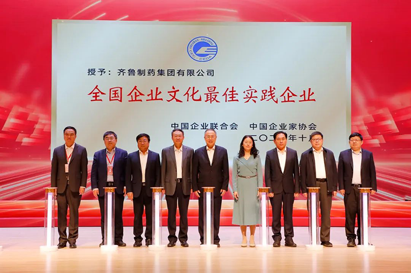 10月22日,中国企业联合会在济南召开2023全国企业文化现场会,授予齐鲁制药集团有限公司(以下简称“齐鲁制药”)“全国企业文化最佳实践企业”称号。中国企业联合会、中国企业家协会党委书记,常务副会长兼理事长朱宏任;山东省委统战部副部长、省工商联党组书记、常务副主席张鲲;山东省工业和信息化厅一级巡视员罗新军;济南市委常委、副市长王宏志;济南高新区党工委副书记、管委会常务副主任任广锋;济南市工信局党组副书记、副局长魏斌;尼山世界儒学中心(中国孔子基金会秘书处)党委委员、中国孔子基金会副秘书长米怀勇;中国医药企业管理协会副会长王学恭;山东省企业联合会秘书长周磊;北京财贸职业学院原校长、二级教授、首都经济贸易大学博士生导师王成荣;济南市企业与企业家联合会会长黄淑玲;齐鲁制药党委副书记、总裁李燕出席现场会,共同见证齐鲁制药“全国企业文化最佳实践企业”颁证授牌。会议由中国企业联合会、中国企业家协会党委委员、副理事长刘鹏主持。现场会上,朱宏任、李燕、王学恭、罗新军、王宏志、周磊分别致辞,齐鲁制药副总裁申丽作企业文化主题报告,王成荣作专家点评。