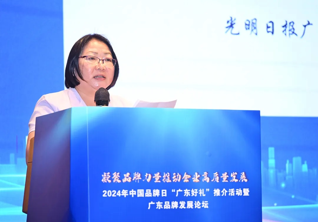 资深媒体人光明日报广东记者站站长、高级记者吴春燕,从媒体人的视角,畅谈了“广东好礼”推介活动暨广东品牌发展论坛的重要意义,也介绍了光明日报在品牌强国行动中发挥的重要作用,包括为企业增强品牌意识,提升知名度、美誉度、影响力,通过形式多样的宣传推广,充分利用媒体资源,讲述品牌故事,传播品牌声音,展现广东品牌力量,使得越来越多的广东品牌在国内外市场得到认可、赢得声誉,为品牌强省和中国品牌建设贡献了力量。