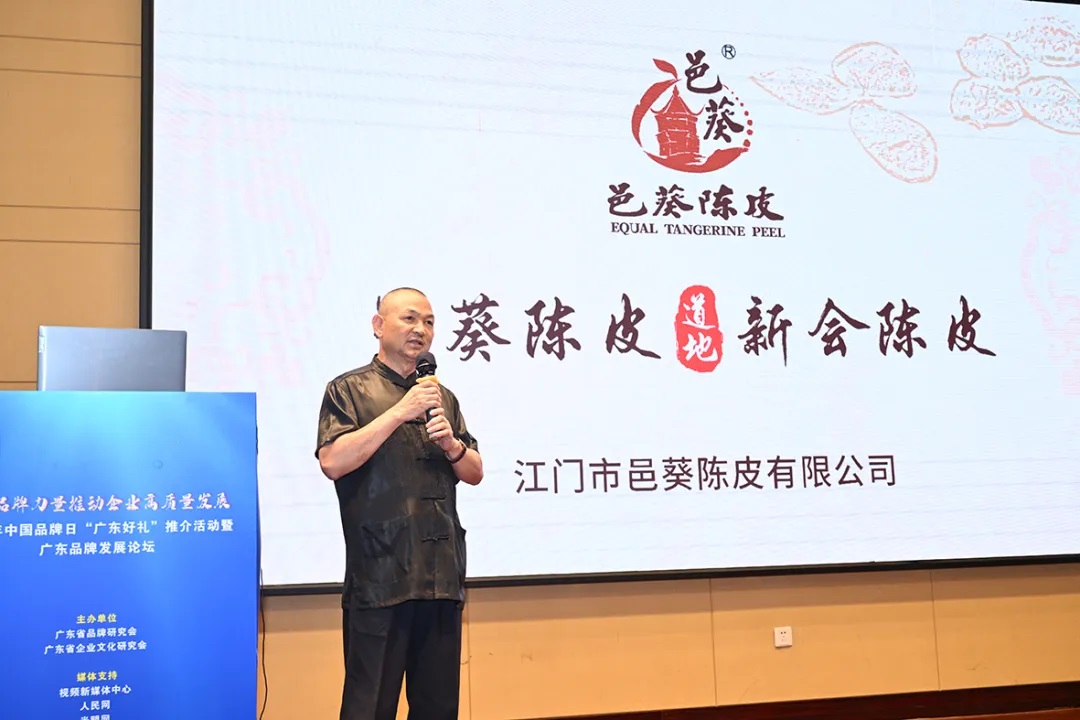江门市邑葵陈皮有限公司董事长梁朝晃分享了邑葵陈皮品牌创建的历程。他表示,作为“新会陈皮炮制技艺”非物质文化遗产传承人,一直致力于新会陈皮的种植、研发、生产、销售、陈藏、展示,公司已成为省级非物质文化遗产保护研究示范基地,以公司+农户+基地的模式,在新会种植柑果1000多亩,产品已荣获“粤字号”“广东名优品牌”等多项荣誉,将继续推广新会陈皮健康养生文化,擦亮邑葵陈皮康养和“药食同源”文化品牌,扩大宣传推广范围至全国及海外市场,推动新会陈皮产业高质量可持续发展。