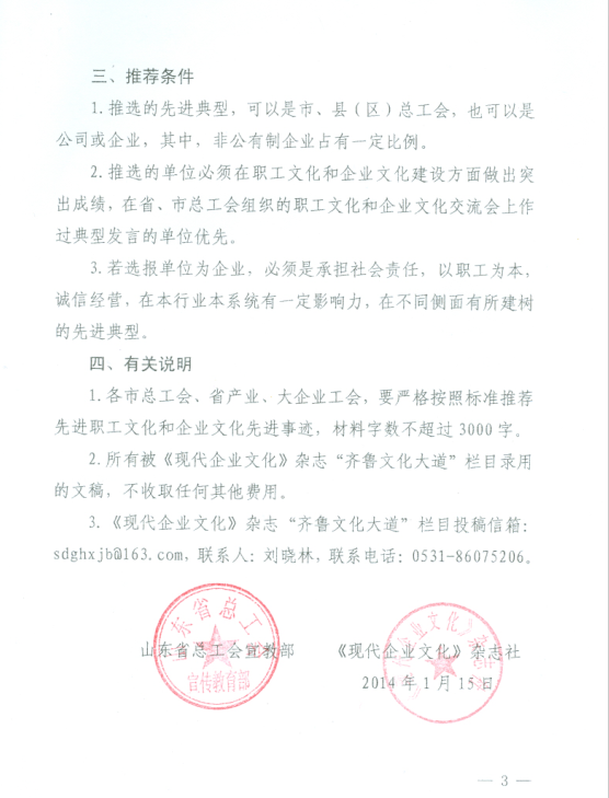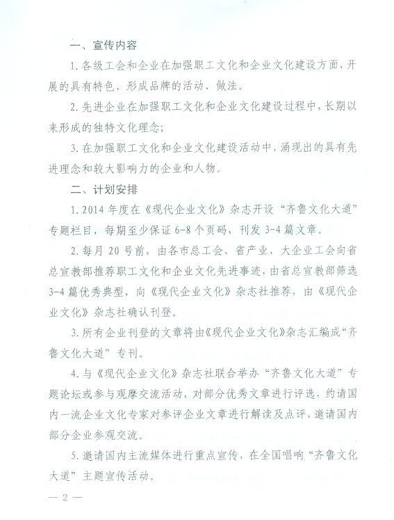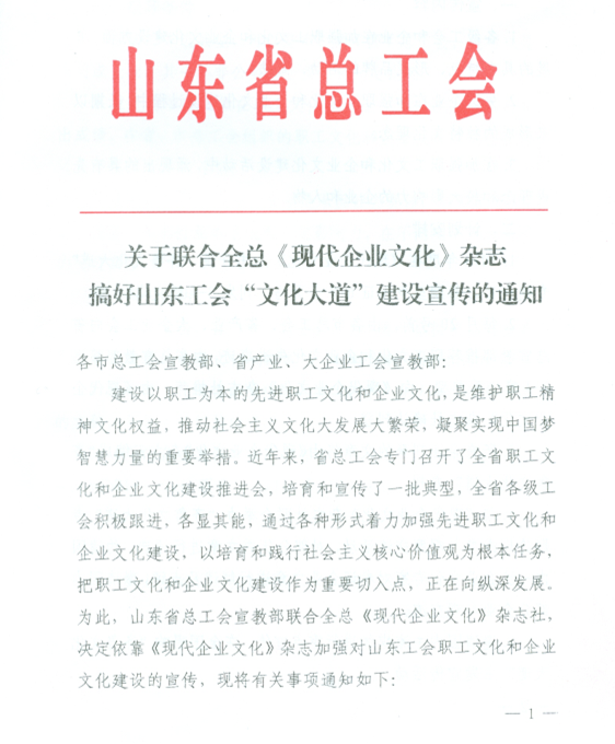 关于联合全总《现代企业文化》杂志搞好山东工会“文化大道”建设宣传的通知 |