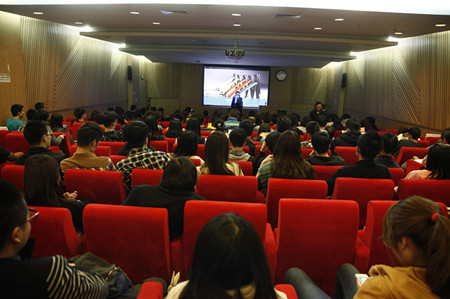【台下高朋满座,来自各地高校的老师、同学,还有国内外的媒体朋友听的津津有味】
